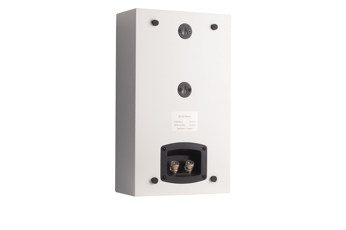 95.22音响为密闭式音箱,采用的18毫米厚中密度纤维材质保证了箱体的高稳定性。因其构造坚固,故此小型壁挂式音箱便可重达5kg。内部支柱以及其绝缘材料可将谐振影响减至最低,从而呈现出干净且具有活力的声音。而音响可借助背面的孔槽设备轻松挂于墙上进行使用。