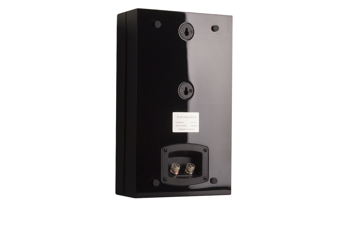 95.22音响为密闭式音箱,采用的18毫米厚中密度纤维材质保证了箱体的高稳定性。因其构造坚固,故此小型壁挂式音箱便可重达5kg。内部支柱以及其绝缘材料可将谐振影响减至最低,从而呈现出干净且具有活力的声音。而音响可借助背面的孔槽设备轻松挂于墙上进行使用。