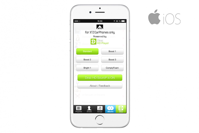 我们的XTZ播放器有Dirac公司制造,是一款适用于苹果iOS系统的一流的DSP播放软件。你可以使用我们XTZ的耳机试听iTunes乐库中的所有音频,再通过此软件,经过DSP校正功能优化处理,完美音效经过升级后让你感受到极致的声音体验