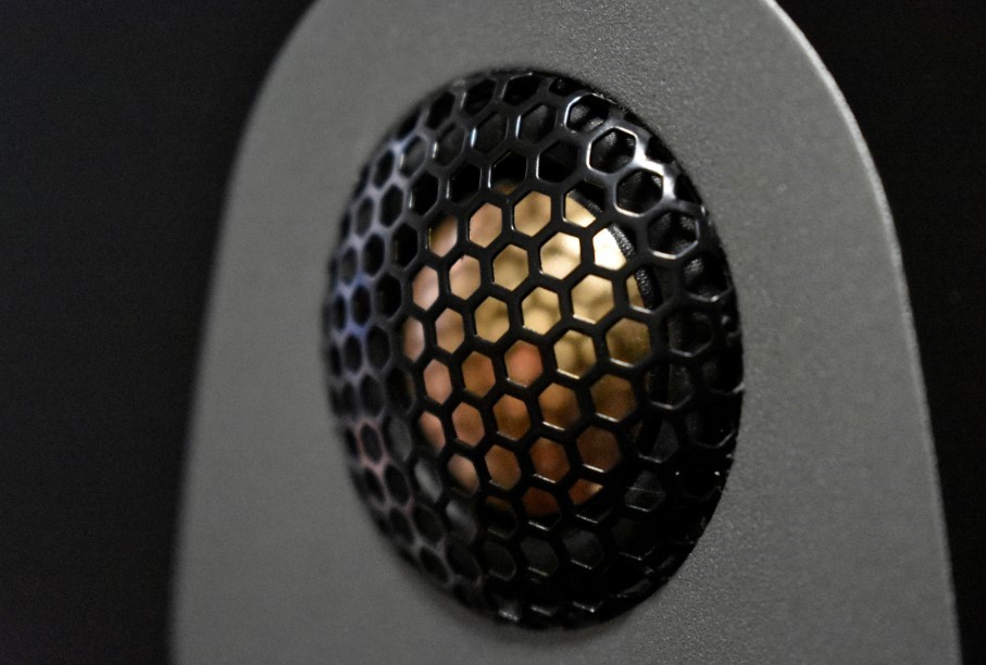 高音喇叭采用直径25毫米的铝镁合金高音球顶单元,其优异的声音散射模式和脉冲响应并被屡次验证。采用高性能的磁路系统进一步提升了单元的功率输出,通过这些技术使音箱能在更高的声压下保持稳定。该技术也使正常声压下播放的声音更为干净细腻。高音单元外部设有镂空金属保护罩,确保单元防护万无一失。