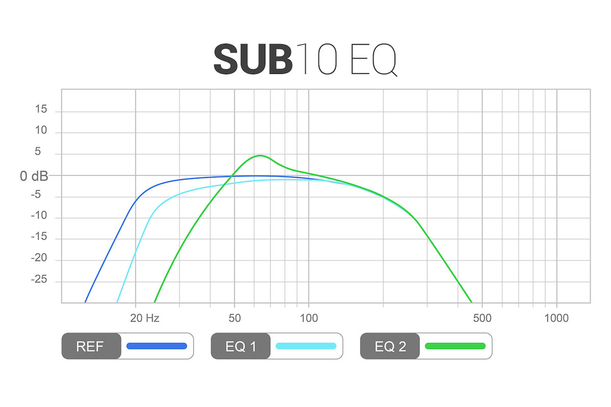 这款SUB10.17低音炮提供通过低音炮后部的开关式可调节均衡器来调节音效。EQ REF能提供最深沉的低音,EQ1能阻断最低的频率使声音在狭小的房间内增强空间感,EQ2能将击打低音提升为铿锵低音。此外,这款低音炮还能使用为低音反射管提供的塞子来调节音效。当两个塞子都密闭时,10.17低音炮就像一个精准的全密闭盒子,同时能发出an earlier sloping bass。