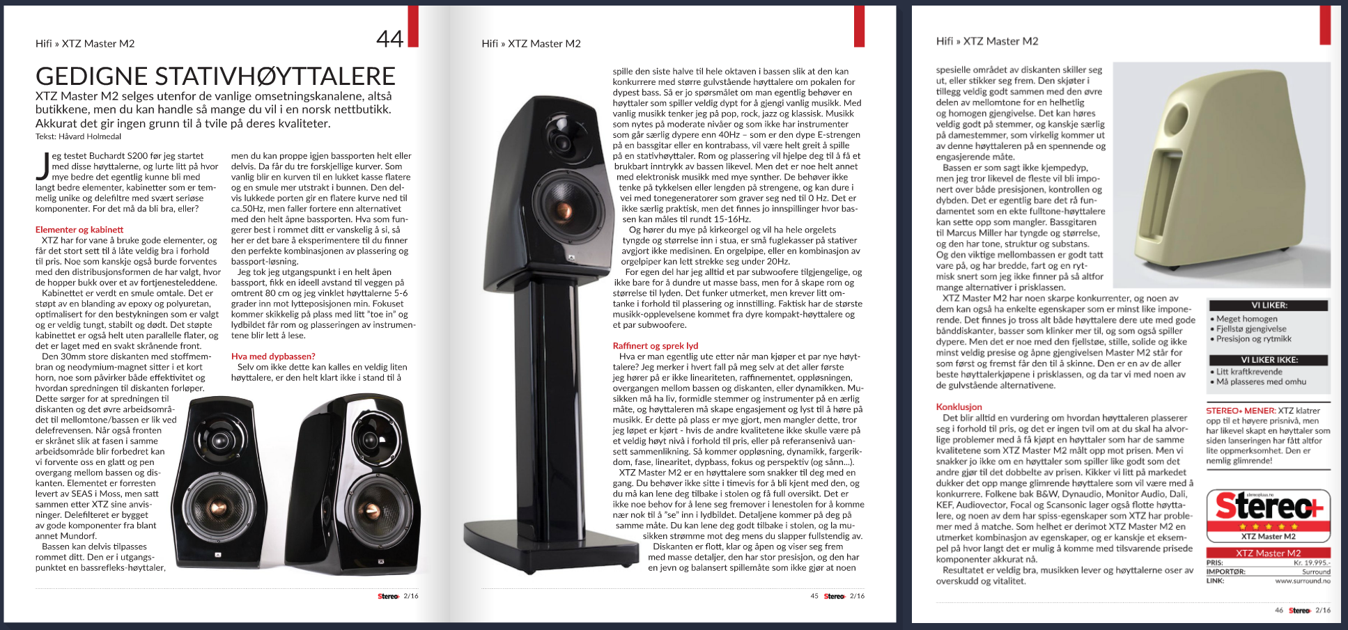 Score: 5/5 "Master M2 is certainly one of the most impressive bookshelf speakers I ever had a chance to listen to, for its capabilities in terms of rendering reach a rare level in this range of price." "With Master M2, XTZ delivers a bookshelf speaker that truly deserves the "high end" label. Fantastic manufacturing quality, seducing look, but what impresses most is the level of performance, which would have nothing to fear in a comparison with many competitors waring a higher price tag"