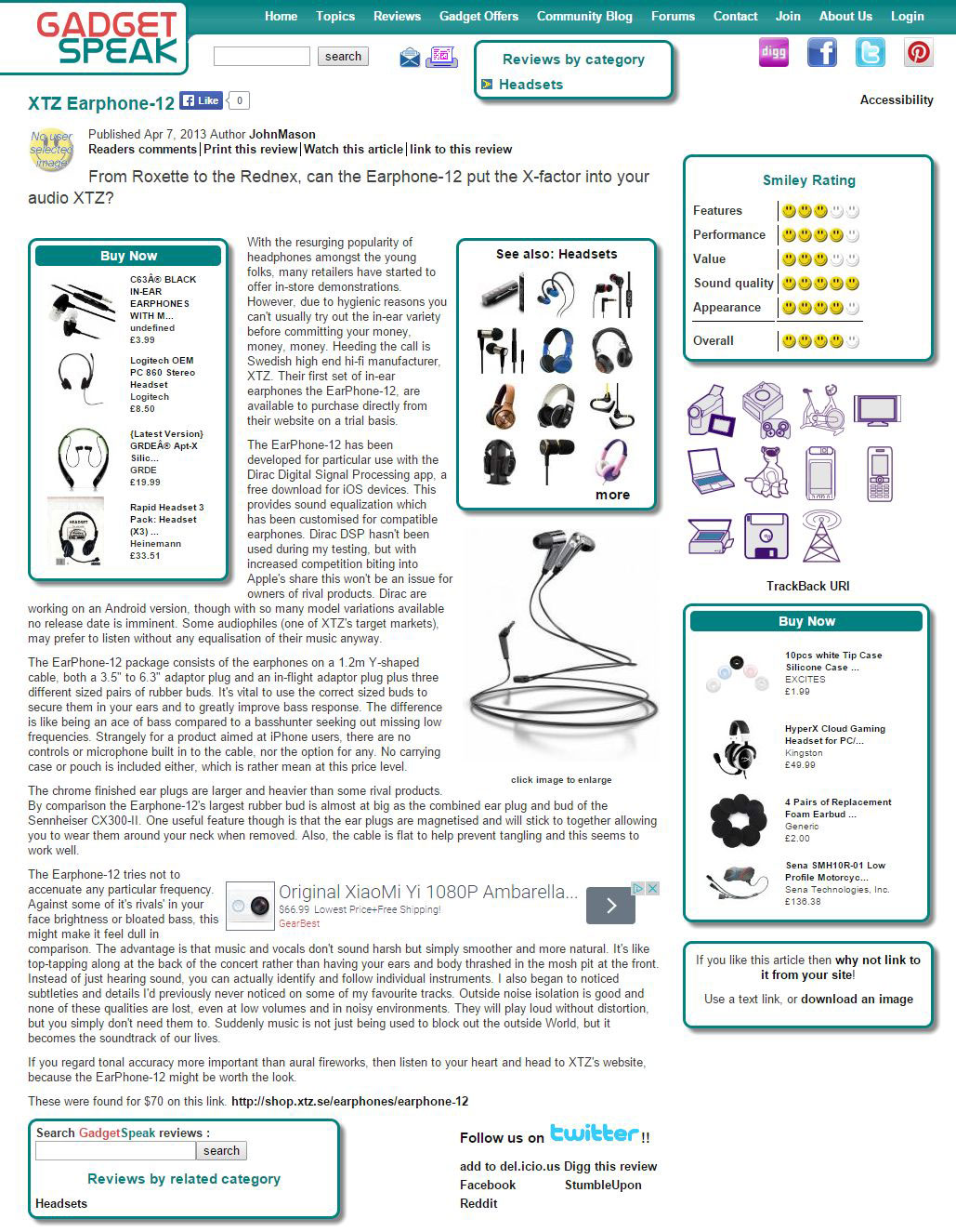 "We rarely give Awards, but we would like to be quoted for "10/10 for the price" - XTZ Earphone 12 is a little gem - and it's affordable."